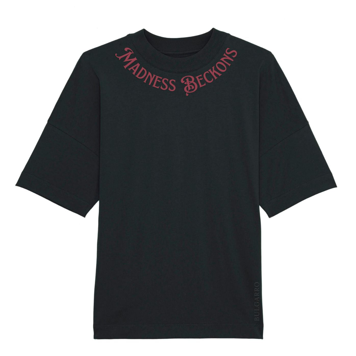 Изработена от 100% органичен памук, с овърсайз кройка, тази тениска съчетава комфорт, устойчивост и тъмна улична естетика.