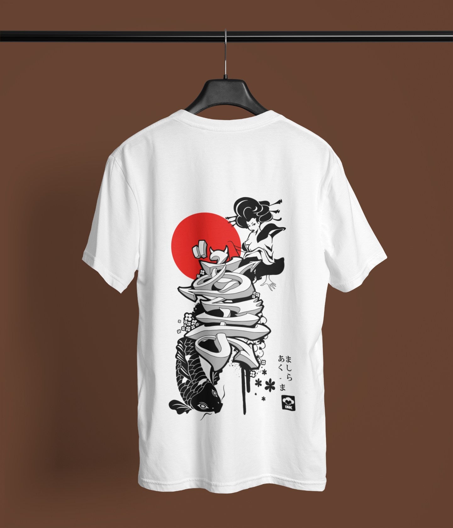 Издигни уличен си стил с тази висококачествена тениска, изработена от 100% органичен памук. С впечатляващ дизайн, вдъхновен от японската култура на гърба и минималистичен акцент отпред, този тениска съчетава традиция с модерна визия. Материята е изключително мека, дишаща и щадяща природа – идеална за ежедневна употреба с грижа към околната среда.